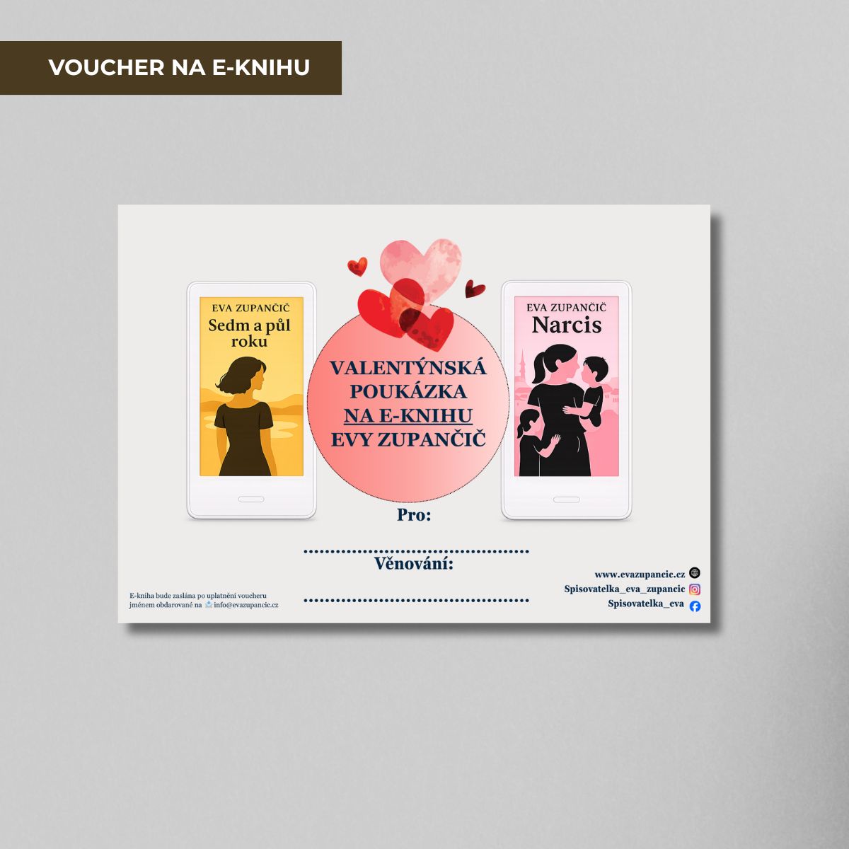 Hledáte dárek, který není jen "hezký", ale opravdu něco řekne? Valentýnský voucher na e-knihu od Evy Zupančič je osobní, citlivý a zároveň velmi jednoduchý na darování. Ideální volba pro ženy i muže, kteří chtějí darovat ženám příběh, ve kterém se mohou najít.